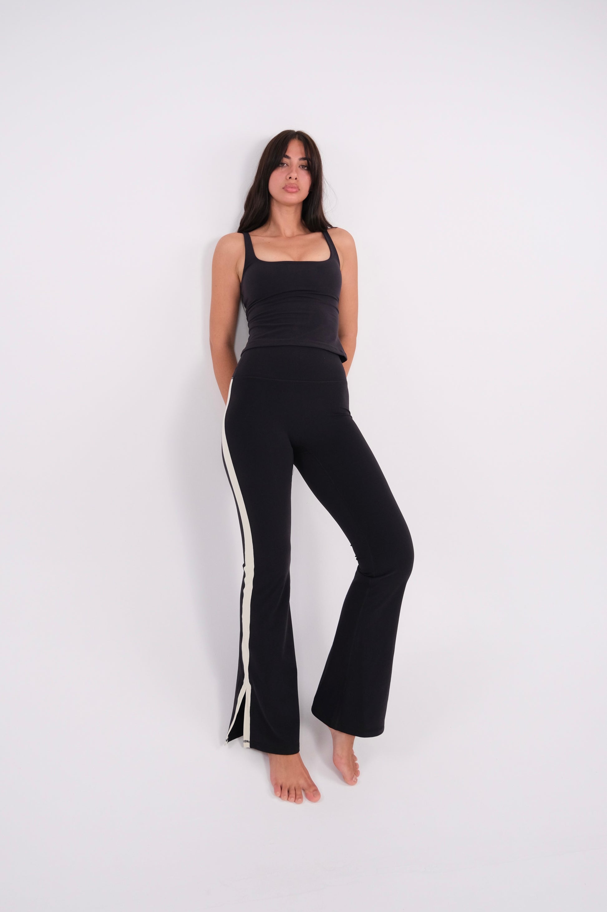 Designed with the same flattering, high-waisted fit you love, the Side Stripe Flares feature a contrast side stripe and a subtle slit for a sharper, more refined silhouette. Soft and stretchy, but intentionally flattering, they’re made to feel a little more dressed-up than the original, without sacrificing comfort.